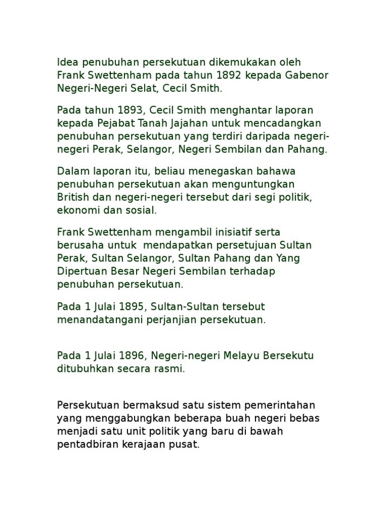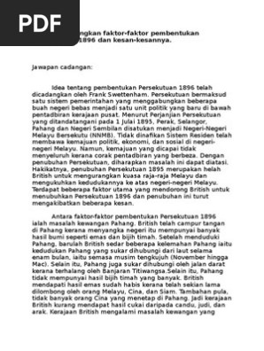 Faktor Faktor Pembentukan Persekutuan 1896 Dan Kesan Kesannya Pdf